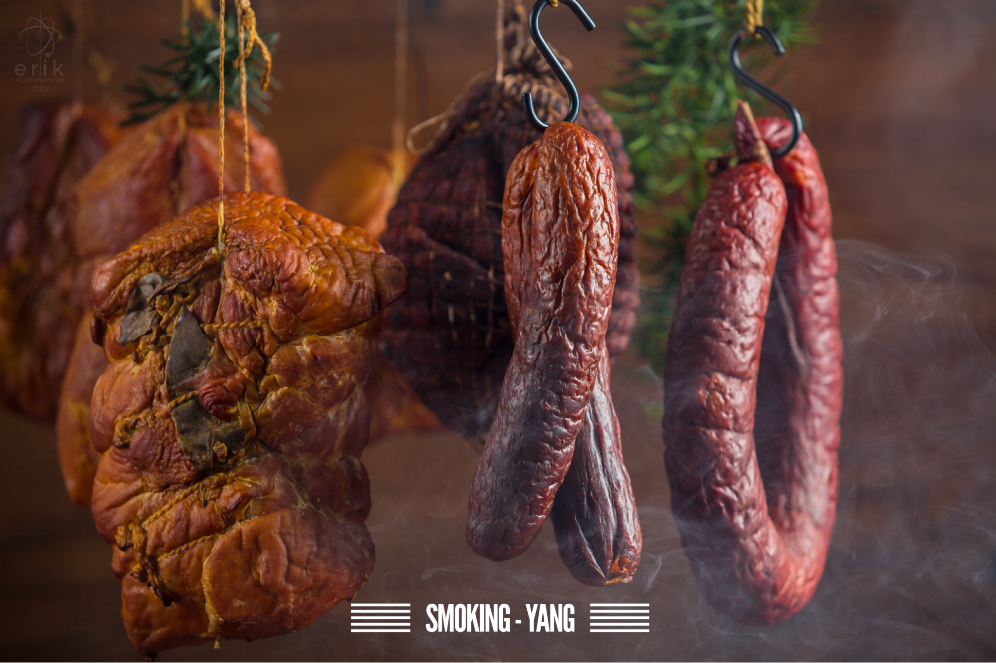 Smoking food adds yang energy to food. Smoking can add brilliant flavor and is commonly used with meats and cheese.